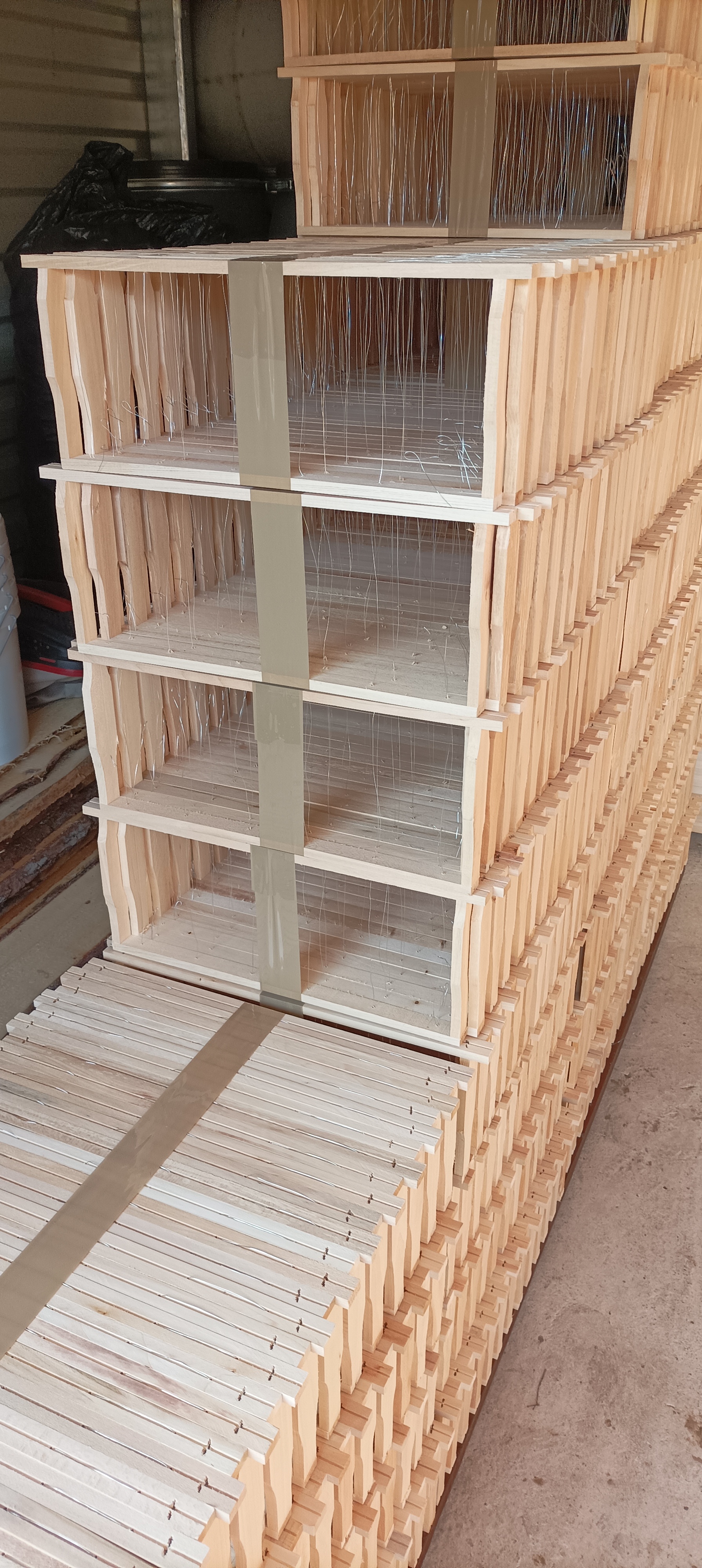 A kész keretek 6 szál 0,4-es dróttal befűzve.
