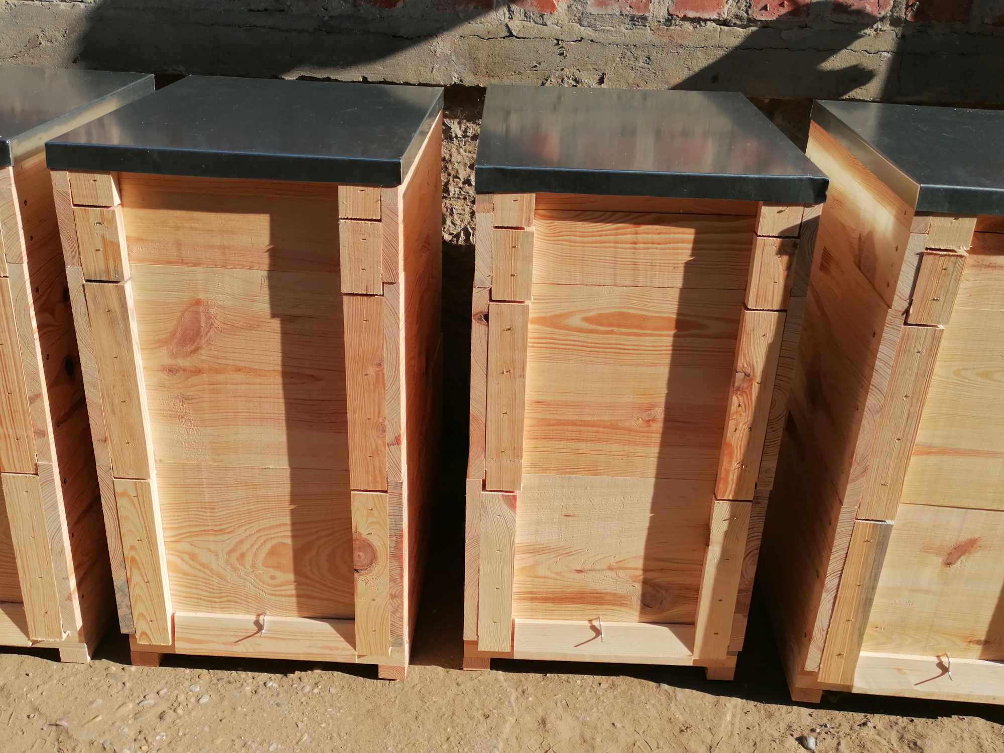 a kaptár elemek táblásitott fenyőből készülnek .