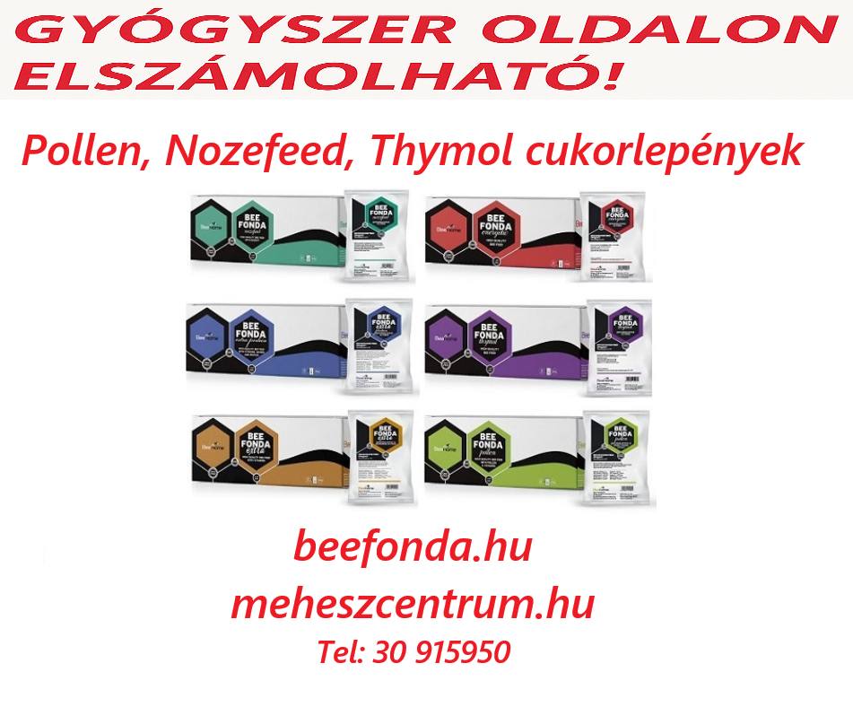GYÓGYHATÁSÚ KÉSZÍTMÉNY BeeFonda Nozefeed cukorlepény 1943/1/NM/2021 NÉBIH ÁTI (1 kg) 1050FT BeeFonda Thymol cukorlepény 1942/1/NM/2021 NÉBIH ÁTI (1 kg) 890Ft Beefonda Pollen cukorlepény 2948/1/NM/2025 NÉBIH ÁTI (1 kg) 1300Ft !!! ( 1kg 1300FT !!!! ) Cukorlepények : Natúr 790 FT/KG , Vitaminos 890 FT/KG , Extraproteines 1150FT/KG