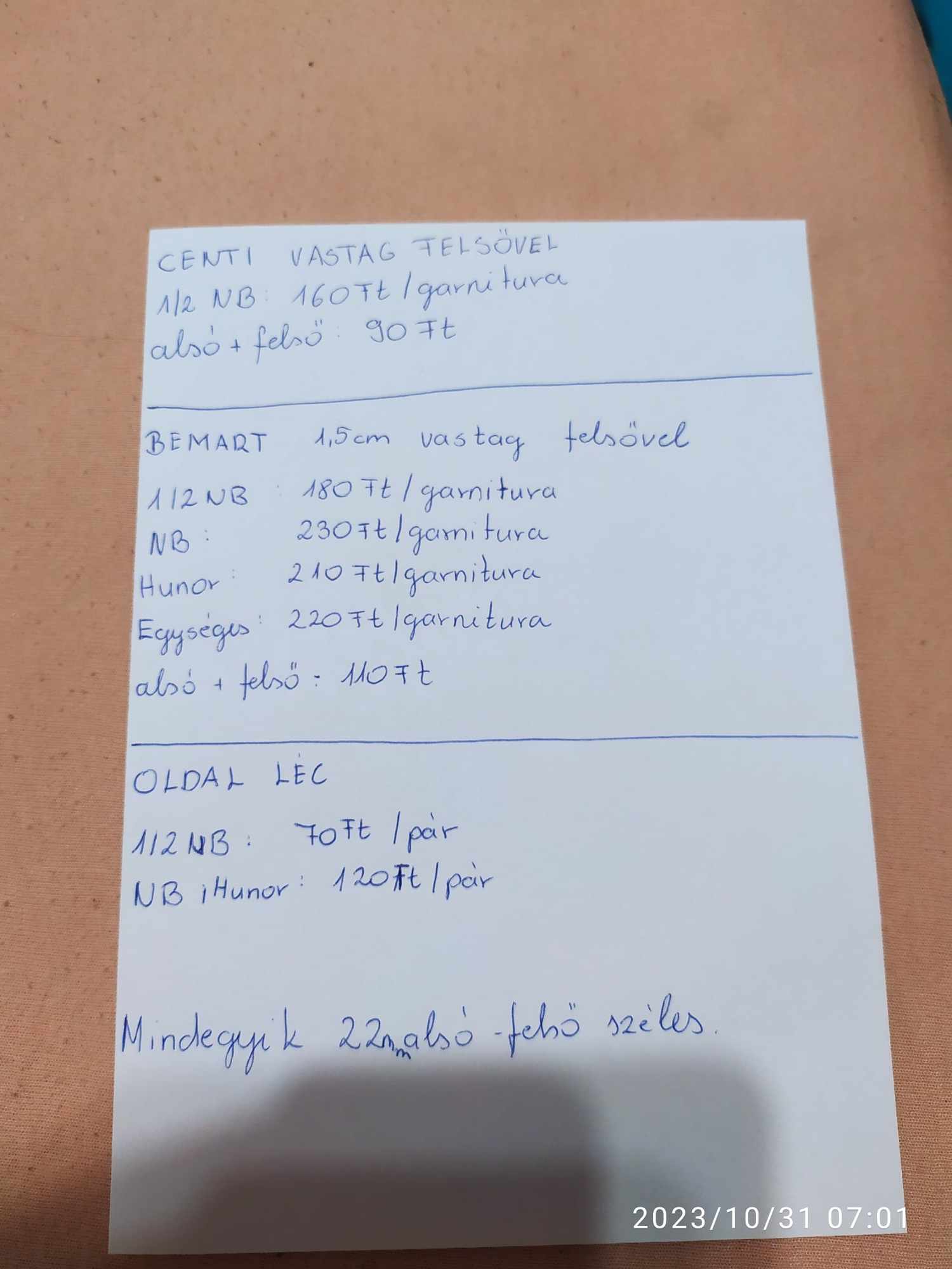 Eladó Lapra szerelt keretléc.Anyaga műszáritott ezüsthárs. Helyileg Somogyzsitfa. Érdeklödni telefonon lehet. 06302715590 Árak 1/2NB centi vastag felsővel 160ft/garn 1.5 cm vastag felsővel 180ft/garn Nb 230 ft/garn Hunor 210ft/garn Oldalléc 1/2nb 70ft/pár NB, hunor 120ft/pár mart felső +alsó 110ft centis felső + alsó 90ft Egyéb méret miatt érdeklődjön 06302715590