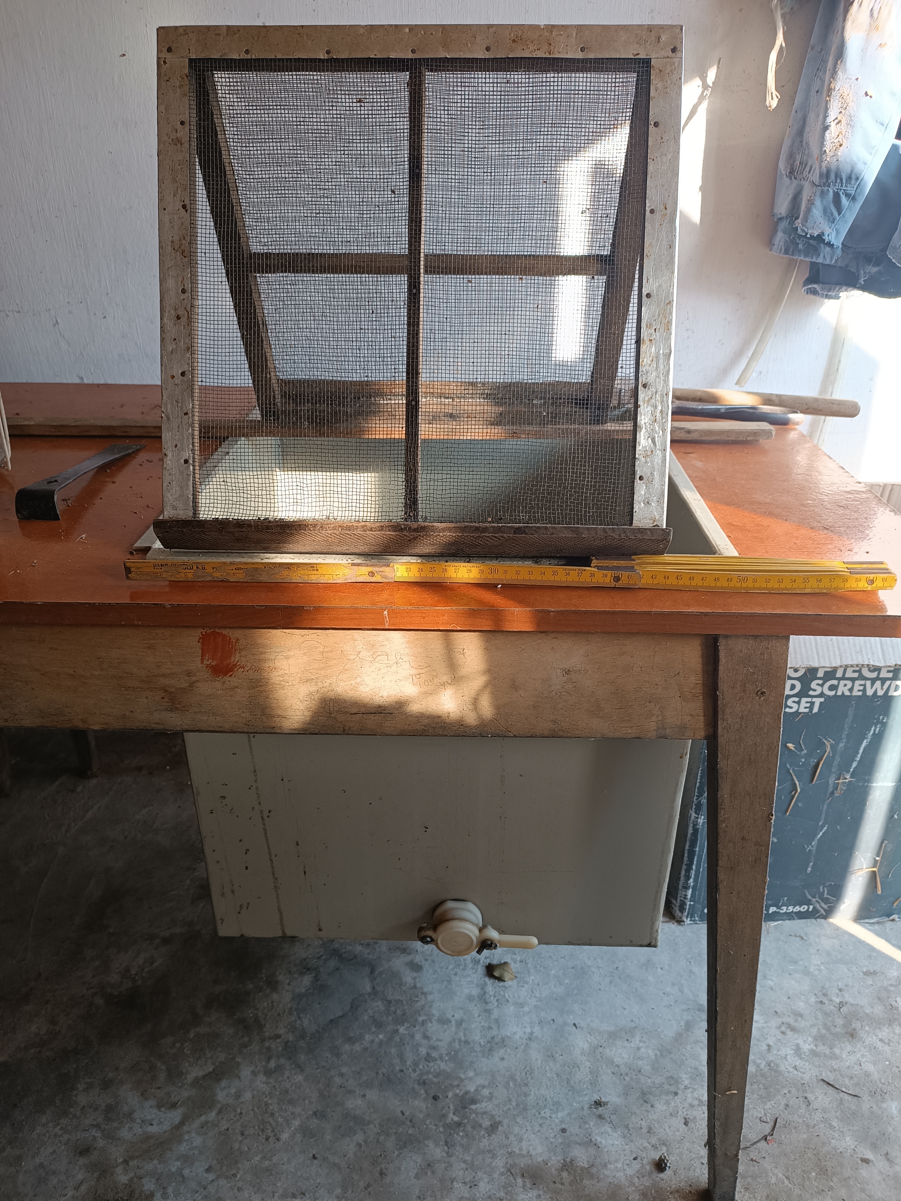 Eladó Rácz féle 24 NB 1/2 keretes sugaras pergető 12v-os fordulatszabályzós. + Fedelező eszközök. 50x50x50 cm fedelezőkád rosdamentes szűrő távtartó az alján. Keret tartó, gőzőz viaszkés. Pergető: 280000 ft Fedelező kompletten :65000 ft