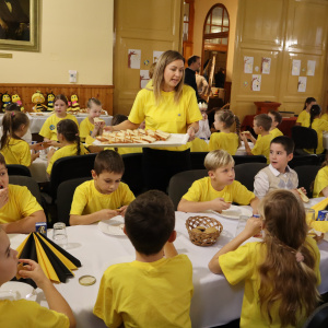 A műsort követően a szintén gyermekből álló műsorvezetők egyenként mutatták be a jelenlévő díszvendégeket, akik a bemutatással egy időben foglalták el helyüket a díszasztalnál.
